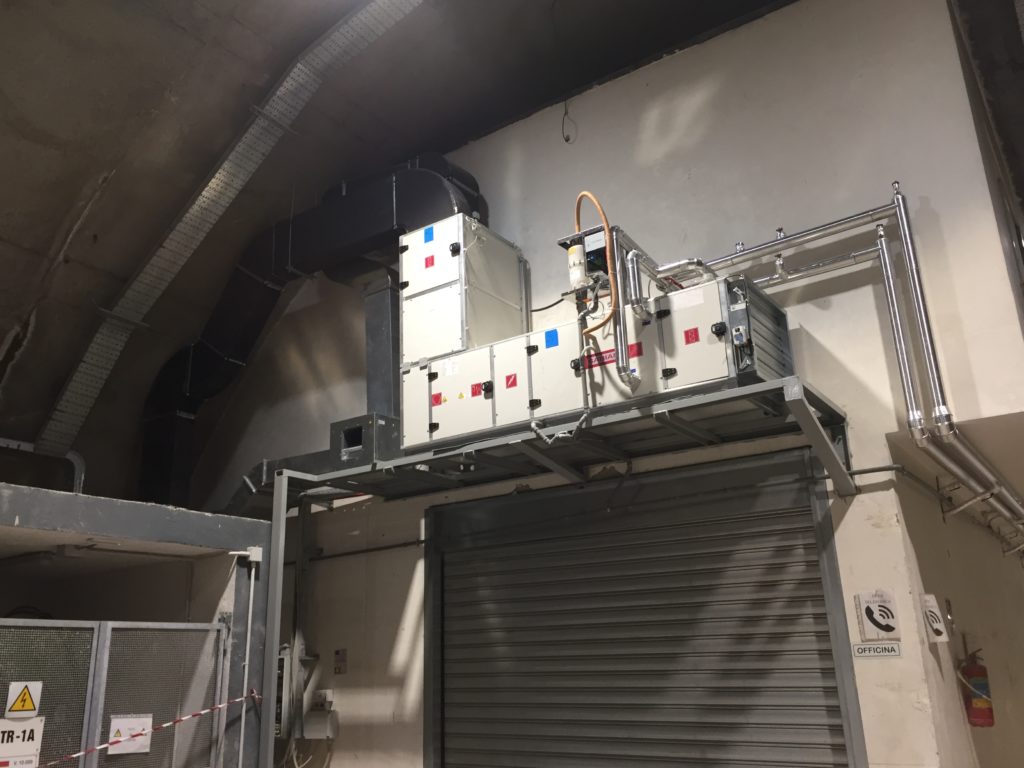 Realizzato nella palazzina adibita ad uffici, realizzata presso il depuratore di Seiano, composta principalmente da due sezioni, la prima per il controllo dell’aria mediante l’impiego di una Unità di Trattamento Aria, la seconda per la climatizzazione degli ambienti mediante l’impiego di Fan Coil