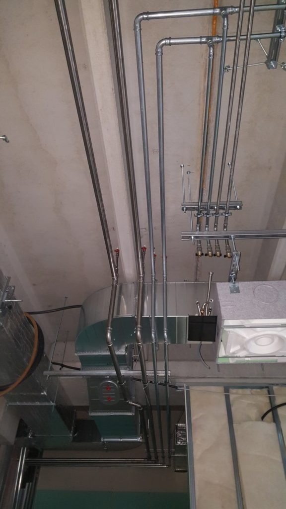 Impianto di condizionamento di tipo Idronico realizzato mediante l’utilizzo di tubazioni in acciaio con sistema tipo ‘PRESSFITTING’.