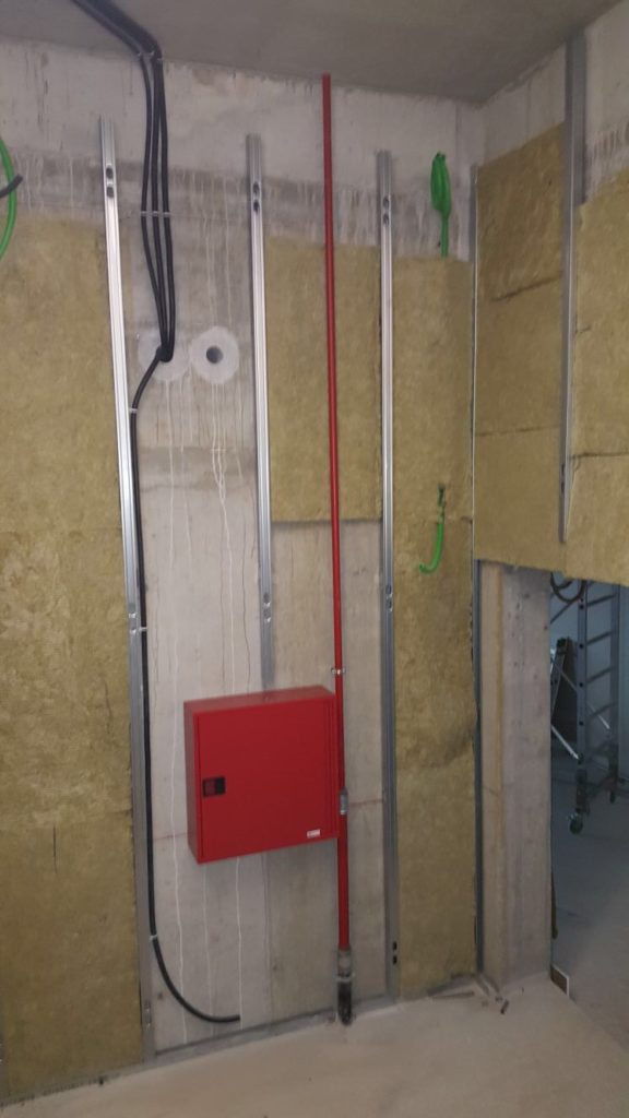 Impianto antincendio realizzato mediante l’installazione di circa 10 naspi nella parte riservata agli uffici.