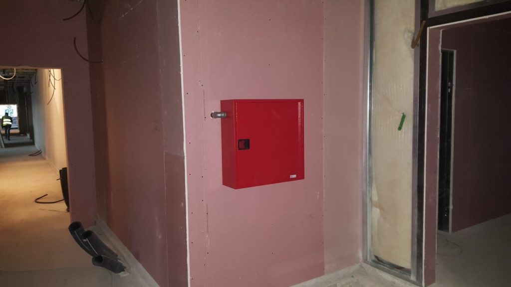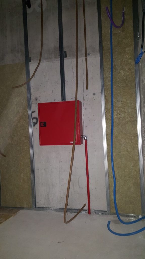 Impianto antincendio realizzato mediante l’installazione di circa 10 naspi nella parte riservata agli uffici.