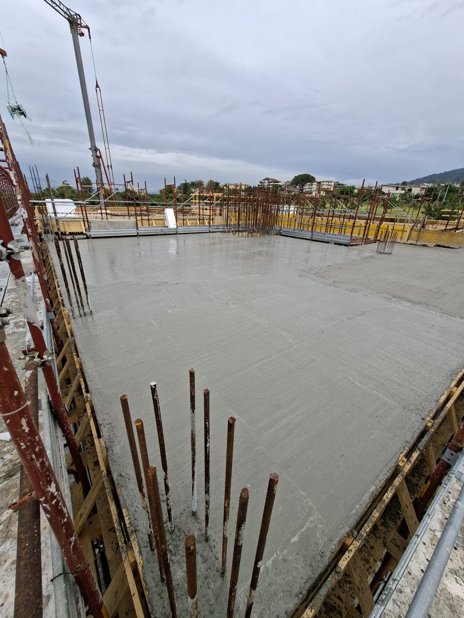Fondazioni su platea in calcestruzzo armato, pilastri e travi in c.a. gettati in opera.